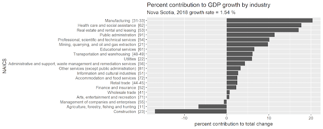 The results of this methodology for Canada and each province is presented below. Note, for 2019Q3 I calculate Real Estate Renting and Leasing to only account for about 27% of the GDP growth. Mind you this is up substantially from 2018 where it accounted for only about 11% of the GDP growth.